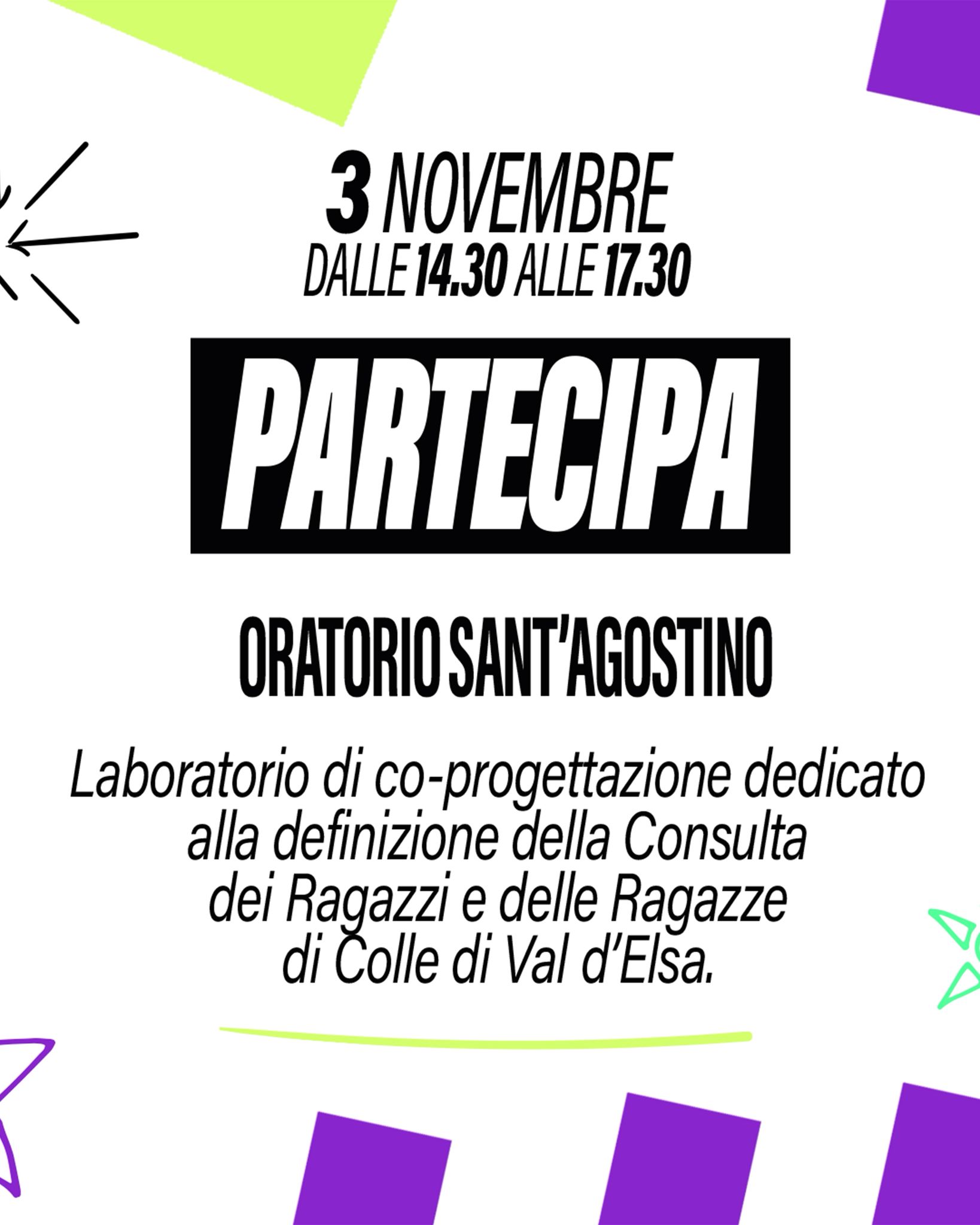 Il 3 novembre è in programma un laboratorio di co-progettazione con la Consulta dei Ragazzi, dedicato alla definizione del nuovo modello di governance giovanile per Colle X.