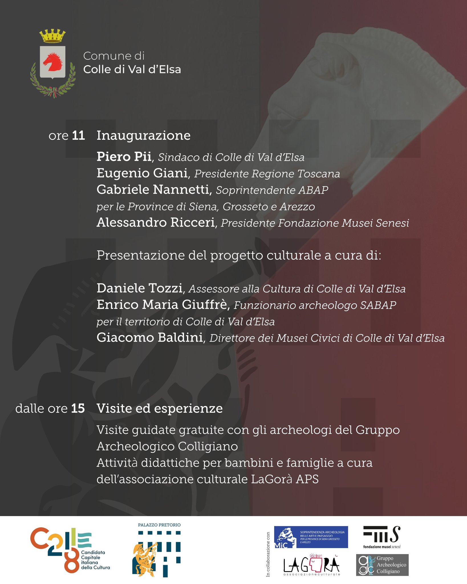 Nel pomeriggio, dalle ore 15:00, sono previste visite guidate gratuite a cura del Gruppo Archeologico Colligiano e attività didattiche per bambini e famiglie organizzate dall’associazione LaGorà APS.